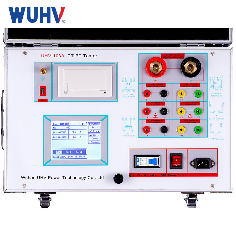 CT/PT TESTER is mainly used for field testing of P class CT and PT. The test items mainly include excitation characteristic, transformation ratio, polarity, Degauss, 5% and 10% error curves, secondary circuit check, withstand test of power frequency alternating current and secondary load. Adopt LCD, self-equipped minitype printer supporting field printing; supporting to use USB flash disk to dump data, with simple and convenient operation.